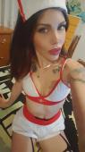 Tornata a casa dopo un aperitivo, vestita tutta trasparente ;), faccio uno striptease, mi spoglio nuda, resto solo con le autoreggenti bianche, mi tocco il corpo, ti mostro il mio buchino in primo piano e... alterno sega e pompino, sega fatta davvero bene, un gran gioco di mano per poi farti sborrare addosso a me! Cosi posso darti la "buonanotte" che meriti!!